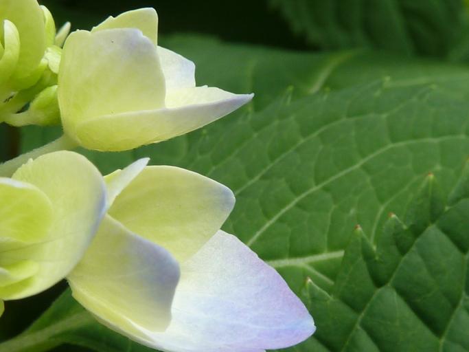 Keywords: purple flowers hydrangeas nature bloom petals plant leaf close-up