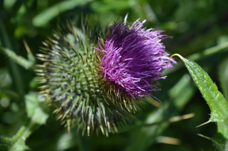 Keywords: purple thistle bloom nature flower purple flower spines close up spring flowers plants