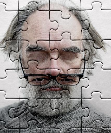 Keywords: puzzle jigsaw puzzle old man glasses metaphor assembly jigsaw piece