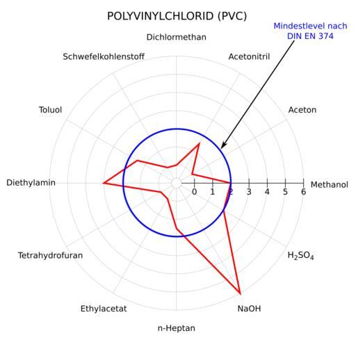 Keywords: PVC-Spinne.svg Spinnendiagramm Beständigkeit von PVC-Schutzhandschuhen Glove selection PVC Own after http //www dguv de/dguv/medien/ifa/de/pra/chemikalienschutzhandschuhe/pdf/polyvinylchlorid pdf 2015-01-23 Kopiersperre code by StefanPohl PD-own Inkscape gnuplot reset set term svg size 700 700 fname 'Verdana' fsize 12 set size square 9 set lmargin at screen 15 set tmargin at screen 9 set angles degrees unset key unset border set polar set rtics 0 0 1 1 2 2 3 3 4 4 5 5 6 6 7 set rrange 1e-2 7 unset xtics unset ytics set grid polar 30 lt 1 lc 0 lw 0 3 set_label x text sprintf set label ' s' at 8 cos f 8 sin f center text x x eval set_label 0 Methanol 2 eval set_label 30 Aceton 0 eval set_label 60 Acetonitril 1 5 eval set_label 90 Dichlormethan 0 eval set_label 120 Schwefelkohlenstoff 0 eval set_label 150 Toluol 1 5 eval set_label 180 Diethylamin 3 eval set_label 210 Tetrahydrofuran 0 eval set_label 240 Ethylacetat 0 eval set_label 270 n-Heptan 1 5 eval set_label 300 NaOH 6 eval set_label 330 H2SO4 2 set output 'pvc svg' plot - u 1 2 t Polyvinylchlorid PVC w l lt 1 lw 3 lc rgb 0xFF0000 0 3 30 1 60 2 5 90 1 120 1 150 2 5 180 4 210 1 240 1 270 2 5 300 7 330 3 360 3 e unset output Chemical resistance diagrams |