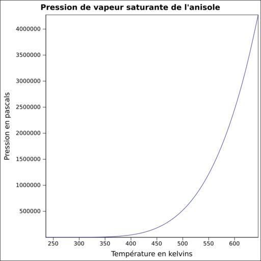 Keywords: Pvs anisole.svg fr Pression de vapeur saturante calculée d'après <br/> Robert H Perry et Donald W Green Perry's Chemical Engineers' Handbook McGraw-Hill USA 1997 7e éd 2400 p ISBN 0-07-049841-5 p 2-50 own Epop 2010-06-24 Created with Gnumeric Vapor-Liquid equilibrium curves |
