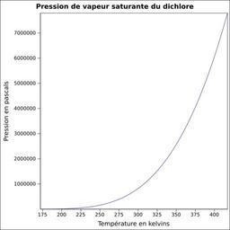 Keywords: Pvs dichlore.svg fr Pression de vapeur saturante calculée d'après <br/> Robert H Perry et Donald W Green Perry's Chemical Engineers' Handbook McGraw-Hill USA 1997 7e éd 2400 p ISBN 0-07-049841-5 p 2-50 own Epop 2010-06-24 Created with Gnumeric Vapor-Liquid equilibrium curves |