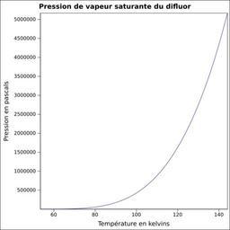 Keywords: Pvs difluor.svg fr Pression de vapeur saturante calculée d'après <br/> Robert H Perry et Donald W Green Perry's Chemical Engineers' Handbook McGraw-Hill USA 1997 7e éd 2400 p ISBN 0-07-049841-5 p 2-50 own Epop 2010-06-24 Created with Gnumeric Vapor-Liquid equilibrium curves |