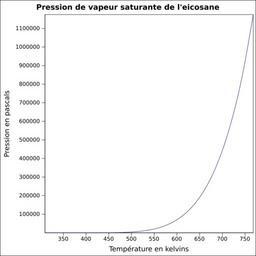 Keywords: Pvs eicosane.svg fr Pression de vapeur saturante calculée d'après <br/> Robert H Perry et Donald W Green Perry's Chemical Engineers' Handbook McGraw-Hill USA 1997 7e éd 2400 p ISBN 0-07-049841-5 p 2-50 own Epop 2010-06-24 Created with Gnumeric Vapor-Liquid equilibrium curves |