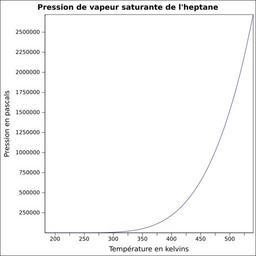Keywords: Pvs heptane.svg fr Pression de vapeur saturante calculée d'après <br/> Robert H Perry et Donald W Green Perry's Chemical Engineers' Handbook McGraw-Hill USA 1997 7e éd 2400 p ISBN 0-07-049841-5 p 2-50 own Epop 2010-06-24 Created with Gnumeric Vapor-Liquid equilibrium curves |