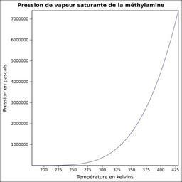 Keywords: Pvs méthylamine.svg fr Pression de vapeur saturante calculée d'après <br/> Robert H Perry et Donald W Green Perry's Chemical Engineers' Handbook McGraw-Hill USA 1997 7e éd 2400 p ISBN 0-07-049841-5 p 2-50 own Epop 2010-06-24 Created with Gnumeric Vapor-Liquid equilibrium curves