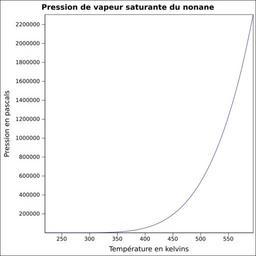 Keywords: Pvs nonane.svg fr Pression de vapeur saturante calculée d'après <br/> Robert H Perry et Donald W Green Perry's Chemical Engineers' Handbook McGraw-Hill USA 1997 7e éd 2400 p ISBN 0-07-049841-5 p 2-50 own Epop 2010-06-24 Created with Gnumeric Vapor-Liquid equilibrium curves |