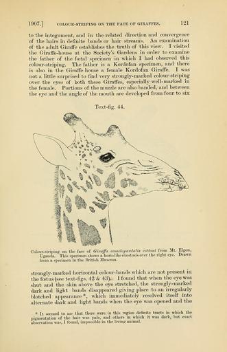 Keywords: PZSL1907Page121.png Giraffa camelopardalis cottoni Giraffa camelopardalis rothschildi <small>Lydekker 1903</small> en Head of Rothschild Giraffe specimen in Natural History Museum from right lateral Proceedings of the Zoological Society of London http //archive org/details/proceedingsofzoo19071446zool vol 1907 issue 1 http //archive org/stream/proceedingsofzoo19071446zool page/121/mode/1up page 121 1907 E Ray Lankester text PD-old PZSL 1907-1 Giraffa camelopardalis head Collections of the Natural History Museum London Giraffa camelopardalis rothschildi