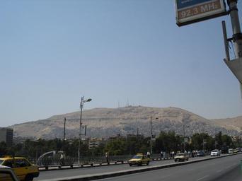 Keywords: Qasiyon Damascus.JPG جبل قاسيون من جسر الرئيس في دمشق Mount Qasioun overlooking Damascus Syria own 2007 Aziz1005 Views of Damascus Mountains of Syria