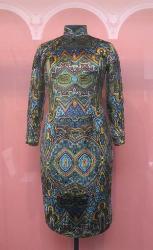 Keywords: Qipao 1960-70, printed velvet. V&A Museum.jpg Qipao from Hong Kong Printed synthetic velvet 1960-1970 V A Museum Museum number FE 47-1995 Qipao fabriqué à Hong Kong Velours synthétique imprimé Années 1960 Victoria and Albert Museum Londres Collection Valery Garrett avec le concours des amis du V A Au XXe siècle la qipao d'origine mandchoue en est arrivée à symboliser la femme dynamique et moderne en Chine Elle est encore très populaire aujourd ™hui Cette robe est coupée et construite suivant un patron occidentalisé par les coutures des épaules Le motif imprimé et le textile suivent la mode des années soixante en occident own 2011-06-24 Ismoon <span class signature-talk >talk</span> 16 47 31 May 2012 UTC Cc-zero Qipao Clothing of China Velvet clothing Close-ups of printed textiles |