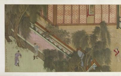 | Keywords: Qiu Ying - Spring Morning in the Han Palace - Walters 3548 - View J.jpg This is a copy of a famous handscroll by the Ming Ming Dynasty artist Qiu Ying Ch'iu Ying It depicts imperial life at its most idyllic During the years of the Qing Ch'ing Dynasty copies of Qiu Ying's painting were popular because they were an excellent guide to elegant behavior 2nd half Other date century 17 ink and color on silk with ivory jiku H 12 1/4 x L 186 9/16 in 31 1 x 473 8 cm accession number 35 48 9061 Panama-Pacific International Exposition China Pavilion San Francisco 1915 no 341 Henry Walters city Baltimore Walters Art Museum Henry Walters Acquired by Henry Walters 1915 Inscription At end; Seal At end faded place of origin China Complete hand scroll <gallery> File Qiu Ying - Spring Morning in the Han Palace - Walters 3548 - View J jpg File Qiu Ying - Spring Morning in the Han Palace - Walters 3548 - View I jpg File Qiu Ying - Spring Morning in the Han Palace - Walters 3548 - View H jpg File Qiu Ying - Spring Morning in the Han Palace - Walters 3548 - View G jpg File Qiu Ying - Spring Morning in the Han Palace - Walters 3548 - View F jpg File Qiu Ying - Spring Morning in the Han Palace - Walters 3548 - View E jpg File Qiu Ying - Spring Morning in the Han Palace - Walters 3548 - View D jpg File Qiu Ying - Spring Morning in the Han Palace - Walters 3548 - View C jpg File Qiu Ying - Spring Morning in the Han Palace - Walters 3548 - View B jpg File Qiu Ying - Spring Morning in the Han Palace - Walters 3548 - View A jpg </gallery> Walters Art Museum license 2D Chinese paintings in the Walters Art Museum Qiu Ying Media contributed by the Walters Art Museum needs category review Media contributed by the Walters Art Museum needs artist update |