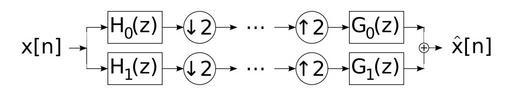 Keywords: QMF.svg cs banka kvadraturně zrcadlových filtrů QMF en quadrature mirror filter QMF bank Own DaBler 2009-01-01 created with Inkscape Signal processing Wavelets