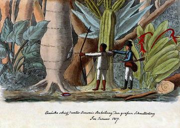Keywords: Quäck schießt den großen Schmetterling.jpg Botokude-Indianer Joachim Quäck Quäck portugiesisch Kuêk ursprünglich Nuguäck vermutlich um 1800 im brasilianischen Bundesstaat Minas Gerais in Brasilien; 1 Juni 1834 in Neuwied traf 1817 als Minderjähriger den deutschen Entdecker Ethnologen Zoologen und Naturforscher Prinz Maximilian zu Wied-Neuwied in Brasilien Quäck wurde für Maximilian zum einheimischen Reisebegleiter der ihm das für seine Forschungen notwendige Hintergrundwissen vermittelte Dieses Aquarell von Maximilian das er im Januar 1817 malte zeigt Quäck mit Pfeil und Bogen bei der Jagd auf große Schmetterlinge Quäck befindet sich in der Gesellschaft des bewaffneten Gärtners Christian Simonis vom Schloß Neuwied und auf Weisung von Maximilian verwendet Quäck bei seiner Schmetterlingsjagd einen stumpfen Pfeil damit er die Schmetterlinge nur betäubt und nicht zerstört Maximilian beschrieb diese Schmetterlingsjagd in seinem Werk Reise nach Brasilien in den Jahren 1815 bis 1817 veröffentlicht im Verlag Heinrich Ludwig Brönner Frankfurt 1820 “1821 Band 2 Seite 130-131 Dort betont Maximilian dass Quäck sich in dieser sonderbaren Art der Jagd eine große Fertigkeit erworben habe Maximilian ließ Quäck ein Jahr später nach Europa nachkommen Am 12 Februar 1818 kam Quäck in Neuwied an Dort arbeitete er für Maximilian als dessen persönlicher Kammerdiener Quäck verstarb im Alter von 34 Jahren am 1 Juni 1834 um 9 Uhr morgens an einer Leberentzündung und wurde am 3 Juni 1834 vermutlich auf dem Alten Friedhof von Neuwied katholisch beerdigt Aquarell und Feder vom Januar 1817 Das Aquarell ist 13 5 x 24 6 cm groß Datiert unten Quäcke schieszt unter Simonis Anleitung den grossen Schmetterling Im Januar 1817 Abbildung in dem Werk Brasilien-Bibliothek der Robert-Bosch-GmbH Katalog Band II Nachlaß des Prinzen Maximilian zu Wied-Neuwied Teil 1 Illustrationen zur Reise 1815 bis 1817 in Brasilien Bearb von Renate Löschner Deutsche Verlags-Anstalt Stuttgart ISBN 3-421-02938-5 Das Bild findet sich unter Katalog Nr 135 auf Seite 132 Maximilian zu Wied-Neuwied 1817-01 PD-old-100 PD-old Maximilian zu Wied-Neuwied Joachim Quäck |