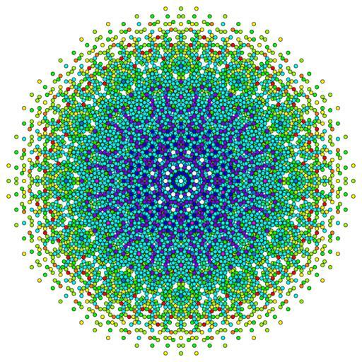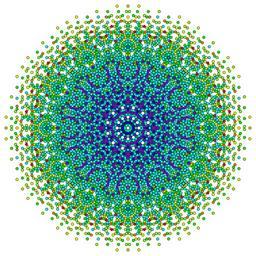 Keywords: Quadrirectified 4 21 polytope Coxeter plane.svg en wikipedia 2011 October 16 Gosset 4_21_polytope graph in Coxeter plane vertices only overlaps by color 8 16 24 32 48 64 96 120 128 192 288 07 36 19 February 2010 UTC I Tom Ruen talk created this work entirely by myself <br />Transferred from http //en wikipedia org en wikipedia Tom Ruen talk en wikipedia Tomruen Original upload log page en wikipedia Quadrirectified_4_21_polytope_Coxeter_plane svg 2010-02-19 07 36 Tomruen 800×800 282374 bytes <nowiki> Quadrirectified Gosset 4_21_polytope graph in Coxeter plane vertices only overlaps by color 8 16 24 32 48 64 96 120 128 192 288 I ~~~ created this work entirely by myself ~~~~</nowiki> Set of colored Coxeter plane graphs; many vertices