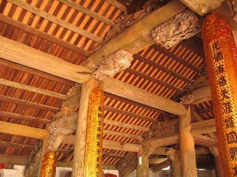 Keywords: Quan Lạn communal house interior.JPG vi Bên trong đình Quan Lạn Các cột treo nội dung sắc phong của các vua nhà Nguyễn Từ phải qua trái <br /> i Quang Lạn hải giác thiên nhai hộ quốc chiến công lưu quốc tích Quang Lạn chốn góc biển bến tr i tổ quốc ghi công chiến công bảo vệ tổ quốc <br /> ii Hưng bang Lý đế khai thương cảng đông hải phú cư ng vạn đại Vua Lý mở thương cảng để làm đất nước hưng thịnh miền đông hải giàu mạnh muôn đ i own Phó Nháy 2010-10-18 Phó Nháy Communal houses in Vietnam Images by Phó Nháy Taken with Canon PowerShot G9 |