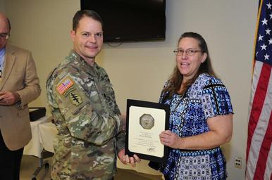 Keywords: fort a. p. hill fortaphill awards army awards armyawards employees governmernt employees governmerntemployees army employees armyemployees people groupshot indoor LTC Andrew Q. Jordan, commander, U.S. Army Garrison, Fort A.P. Hill, and his leadership team hosted the installation's quarterly awards ceremony, Oct. 18. The installation workforce gathered at the Training Support Center and joined in recognizing some 50 employees for time in service, meritorious achievement and dedication to the installation's mission. Hooah! LTC Andrew Q. Jordan, commander, U.S. Army Garrison, Fort A.P. Hill, and his leadership team hosted the installation's quarterly awards ceremony, Oct. 18. The installation workforce gathered at the Training Support Center and joined in recognizing some 50 employees for time in service, meritorious achievement and dedication to the installation's mission. Hooah!