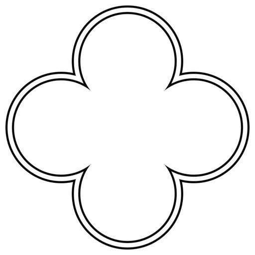 | Keywords: Quatrefoil-Architectural-alternate.svg One form of an architectural/symbolic quatrefoil made of four overlapping circles In the version of the quatrefoil shown the circles are pulled almost as far apart as they can be and still have the circumferences of the innermost circular white areas intersect For different versions see Image Quatrefoil-Architectural png and Image Quatrefoil-Architectural-Square png The quatrefoil is the fourfold version of an architectural trefoil see Image Trefoil-Architectural svg Generated by means of the following PostScript code change 56 to 57 1614716 to see the version of the quatrefoil where adjacent innermost circular white areas are exactly tangent which results in a less aesthetic version of the symbol <pre> 306 396 translate 8 dup scale /x 56 def 57 1614716 /a c 0 360 arc fill def /b -138 x sub 0 a 138 x add 0 a 0 138 x add a 0 -138 x sub a def /c 163 def b 1 setgray /c 157 def b 0 setgray /c 144 def b 1 setgray /c 138 def b 0 0 a showpage EOF</pre> v fl AnonMoos Quatrefoils |