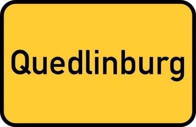 Keywords: quedlinburg medieval harz saxony-anhalt romanesque town sign city limits sign entry sign gateway sign traffic road sign street sign directory yellow germany direction unesco world heritage site