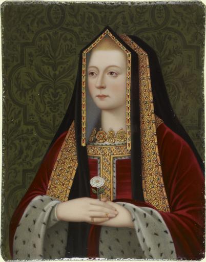 Keywords: people Signed, dated and inscribed on the counter-enamel in red paint: Elizabeth of York, Wife of / Henry VII. / London Augst 1818 / Painted by Henry Bone R.A. / Enamel Painter in Ordinary / To His Majesty & Enamel painter / to his R.H. the Prince Regent / after the Original by Mabuse / in the Collection of the Marquis of Salisbury, Hatfield House, Herts and further inscribed: Dec r L.D. and in ink on a label on the reverse: Elizabeth of York / Wife of Henry 7 th. From the / Original by Mabuse in / the Collection of the Marqs. of Salisbury, Hatfield House, / Herts. / Enamel H. Bone R.A. Signed, dated and inscribed on the counter-enamel in red paint: Elizabeth of York, Wife of / Henry VII. / London Augst 1818 / Painted by Henry Bone R.A. / Enamel Painter in Ordinary / To His Majesty & Enamel painter / to his R.H. the Prince Regent / after the Original by Mabuse / in the Collection of the Marquis of Salisbury, Hatfield House, Herts and further inscribed: Dec r L.D. and in ink on a label on the reverse: Elizabeth of York / Wife of Henry 7 th. From the / Original by Mabuse in / the Collection of the Marqs. of Salisbury, Hatfield House, / Herts. / Enamel H. Bone R.A. |