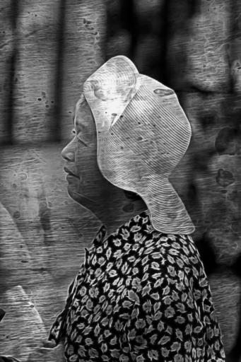 Keywords: blackandwhite black white bw monochrome street streetphotography downtown canada britishcolumbia bc okanagan kelowna woman female person hat summer blockparty queen