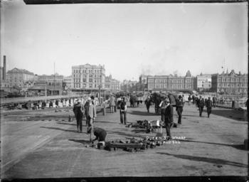 | Keywords: blackandwhite monochrome outdoor photo border black and white Taken at the time of the replacement of the old Queen Street Wharf with a new ferro concrete wharf. View looking directly up Queen Street with Endeans Building (built 1905) on the left and the Gladstone building (built 1883), with Gladstone Coffee Palace, on the right. On the far right is the head office of the Auckland Harbour Board; all in Quay Street. On the left new concrete piles are being driven into the harbour bed. In the foreground workmen are replacing wooden blocks on the old wharf. Taken by William A Price ca 1910 Inscriptions: Inscribed - Photographer's title on negative -bottom left: Queen St Wharf.Auckland. 864. Quantity: 1 b&w original negative(s). Physical Description: Dry plate glass negative 4.5 x 6.5 inches Queen Street Wharf, Auckland. Price, William Archer, 1866-1948 :Collection of post card negatives. Ref: 1/2-000542-G. Alexander Turnbull Library, Wellington, New Zealand. natlib.govt.nz/records/22852958 Taken at the time of the replacement of the old Queen Street Wharf with a new ferro concrete wharf. View looking directly up Queen Street with Endeans Building (built 1905) on the left and the Gladstone building (built 1883), with Gladstone Coffee Palace, on the right. On the far right is the head office of the Auckland Harbour Board; all in Quay Street. On the left new concrete piles are being driven into the harbour bed. In the foreground workmen are replacing wooden blocks on the old wharf. Taken by William A Price ca 1910 Inscriptions: Inscribed - Photographer's title on negative -bottom left: Queen St Wharf.Auckland. 864. Quantity: 1 b&w original negative(s). Physical Description: Dry plate glass negative 4.5 x 6.5 inches Queen Street Wharf, Auckland. Price, William Archer, 1866-1948 :Collection of post card negatives. Ref: 1/2-000542-G. Alexander Turnbull Library, Wellington, New Zealand. natlib.govt.nz/records/22852958 |