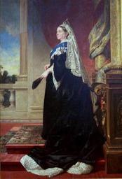 Keywords: Queen Victoria VRI.jpg File Queen Victoria - Von Angeli 1885 jpg artwork title Portrait of Victoria of the United KingdomQueen Victoria as widow 1885 Oil on canvas cm 250 2 167 Institution Royal Collection RCIN 403405 Webshot com other versions <gallery>Queen Victoria - Von Angeli 1885 jpg</gallery> PD-old-auto 1925 DEFAULTSORT 1885; Queen Victoria by von Angeli Heinrich von Angeli 19th-century portrait paintings in the Royal Collection of the United Kingdom Paintings of Victoria of the United Kingdom 1885 oil on canvas paintings in the United Kingdom Portrait 1885 portrait paintings 19th-century oil portraits of standing women at full length Balustrades in portrait paintings Carpets in portrait paintings Columns in portrait paintings Drapery in portrait paintings Portraits with fans Sashes of chivalric orders in portrait paintings Small diamond crown of Queen Victoria