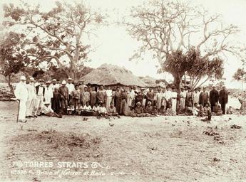 Keywords: Queensland State Archives 2529 Group of natives at Badu Mulgrave Island 1898.png en Group of natives at Badu Mulgrave Island Original photograph caption as in register listing and album Mulgrave Island is the alternative name for Badu Island Torres Strait 1898 http //www archivessearch qld gov au/Image/DigitalImageDetails aspx ImageId 2529 Preferred citation Queensland State Archives Digital Image ID 2529 ID label 1109843 http //www archivessearch qld gov au/Search/AgencyDetails aspx AgencyID 1993 Lands Department Survey of Lands Branch Photographic Branch en Copyright expired Information field Decade 1890-1899 Information field Place en Torres Strait Island Region Information field Keywords en Indigenous people Information field Material Type en Photographic material Information field Type en Image PD-Australia QSA media uploaded by User 99of9 Photographic material from the Queensland State Archives 1898 in Queensland Badu Island Queensland Torres Strait Islanders |