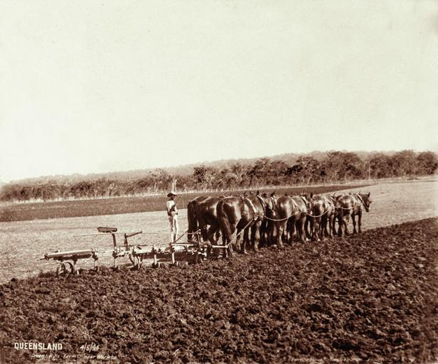 Keywords: Queensland State Archives 3983 Twelve horses ploughing for wheat with a six furrow plough Green Hills Farm near Warwick 4 May 1894.png en Twelve horses ploughing for wheat with a six furrow plough Green Hills Farm near Warwick 1894-05-04 http //www archivessearch qld gov au/Image/DigitalImageDetails aspx ImageId 3983 Preferred citation Queensland State Archives Digital Image ID 3983 ID label 1249444 http //www archivessearch qld gov au/Search/AgencyDetails aspx AgencyID 1993 Lands Department Survey of Lands Branch Photographic Branch en Copyright expired Information field Decade 1890-1899 Information field Place en Southern Downs Region Information field Keywords en Agriculture ll Horse teams Information field Material Type en Photographic material Information field Type en Image PD-Australia QSA media uploaded by User 99of9 Photographic material from the Queensland State Archives 1894 in Queensland Green Hills Farm Farms in Queensland Plowing 1894 in agriculture Wheat fields in Queensland Horses of Queensland |