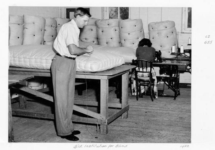 Keywords: Queensland State Archives 4484 Queensland Institution for Blind bed shop August 1952.png en Queensland Institution for Blind bed shop Queensland Blind Deaf and Dumb Institute 1952-08 http //www archivessearch qld gov au/Image/DigitalImageDetails aspx ImageId 4484 Preferred citation Queensland State Archives Digital Image ID 4484 ID label 1269829 http //www archivessearch qld gov au/Search/AgencyDetails aspx AgencyID 1995 Lands Department Survey Office Cartographic Branch Photographic Section en Copyright expired Information field Decade 1950-1959 Information field Place en Brisbane City Information field Material Type en Photographic material Information field Type en Image PD-Australia QSA media uploaded by User 99of9 Photographic material from the Queensland State Archives 1952 in Queensland Queensland Blind Deaf and Dumb Institute Mattresses Workshops in Queensland |