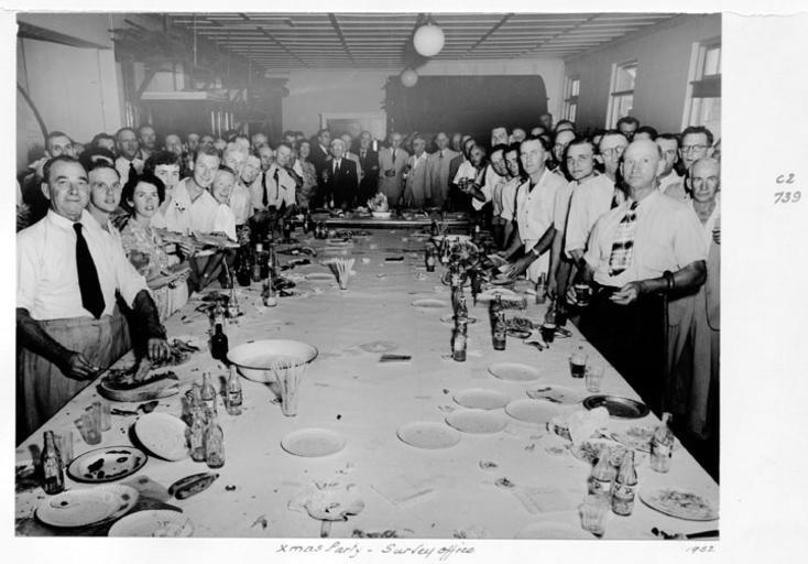 | Keywords: Queensland State Archives 4693 Christmas Party Survey Office December 1952.png en Christmas Party Survey Office 1952-12 http //www archivessearch qld gov au/Image/DigitalImageDetails aspx ImageId 4693 Preferred citation Queensland State Archives Digital Image ID 4693 ID label 1271979 http //www archivessearch qld gov au/Search/AgencyDetails aspx AgencyID 1995 Lands Department Survey Office Cartographic Branch Photographic Section en Copyright expired Information field Decade 1950-1959 Information field Place en Brisbane City Information field Keywords en Public servants Information field Material Type en Photographic material Information field Type en Image PD-Australia QSA media uploaded by User 99of9 Photographic material from the Queensland State Archives 1952 in Queensland Public servants of Queensland Christmas parties Queensland Lands Department Tables in Australia Queensland Survey Office |