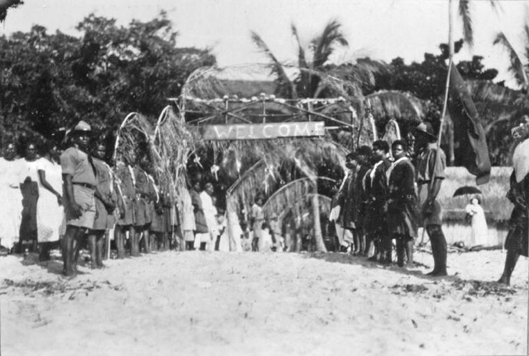 Keywords: Queensland State Archives 5768 Welcome for Hon J C Peterson Home Secretary Murray Island Torres Strait Island June 1931.png en Welcome for Hon J C Peterson Home Secretary Murray Island Torres Strait Island 1931-06 http //www archivessearch qld gov au/Image/DigitalImageDetails aspx ImageId 5768 Preferred citation Queensland State Archives Digital Image ID 5768 ID label 1435000 http //www archivessearch qld gov au/Search/AgencyDetails aspx AgencyID 123 Home Secretary's Office en Copyright expired Information field Decade 1930-1939 Information field Place en Torres Strait Island Region Information field Material Type en Photographic material Information field Type en Image PD-Australia QSA media uploaded by User 99of9 Photographic material from the Queensland State Archives 1931 in Queensland James Christian Peterson Torres Strait Islanders Welcome arches in Queensland Murray Islands |