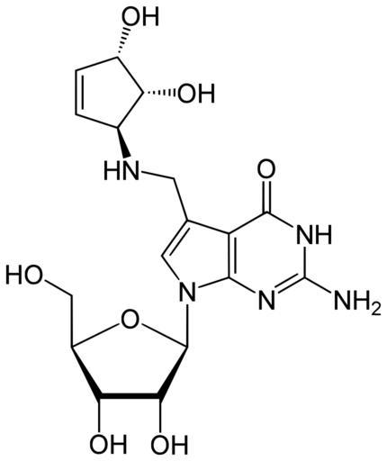 Keywords: Queuosine - Queuosin.svg Queuosine is a modified nucleoside that is present in certain tRNAs in bacteria and eukaryotes Queuosin ist ein modifiziertes Nukleosid dass in einigen tRNAs von Bakterien und Eukaryoten vorkommt own 2008-04-11 Yikrazuul Nucleosides |