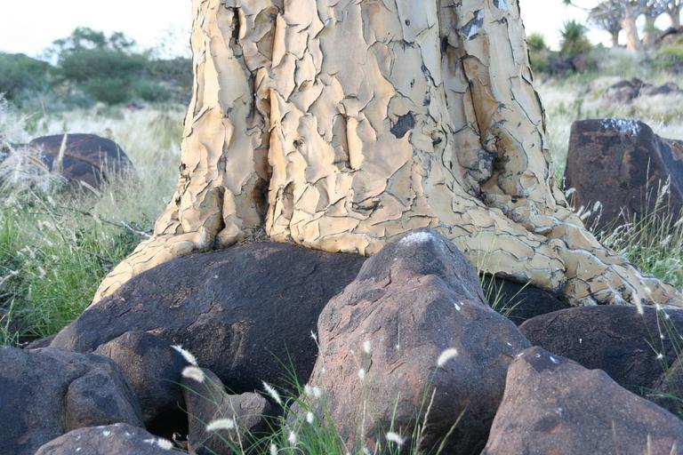 Keywords: quiver tree bark tree root rocks namibia africa desert sky keetmanshoop