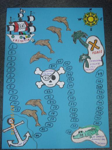 Keywords: 28 παιδιά Τα παιδιά ντυμένα πειρατές ταξίδεψαν με τη μηχανή του χρόνου και αποτέλεσαν τα πληρώματα δύο (2) πειρατικών καραβιών. Διαβάστηκε η ιστορία των καλών και των κακών πειρατών. Παρακολούθησαν μικρό απόσπασμα της ταινίας "Οι Πειρατές της Καραϊβικής". Οι αρχηγοί των πληρωμάτων των 2 καραβιών έψαξαν να βρουν τον κρυμμένο θησαυρό μέσα στον χώρο της πειρατικής βιβλιοθήκης (παιχνίδι) Οι πειρατές και οι πειρατίνες χόρεψαν πειρατικά τραγούδια. Ζωγράφισαν τον δικό τους πειρατή. Τέλος, έπαιξαν το επιτραπέζιο παιχνίδι "Ανακαλύπτοντας τον κρυμμένο θησαυρό" |