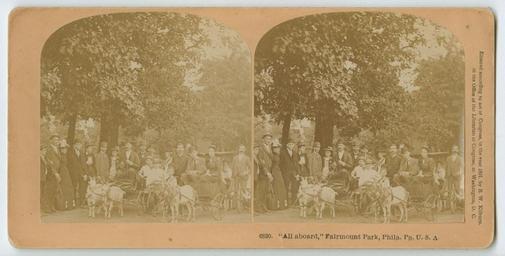 Keywords: stereographs philadelphia fairmount park fairmountpark transportation goats b. w. kilburn bwkilburn Shows a group of men, women, and children gathered around several carriages shaded by tree cover in Fairmount Park, Philadelphia, 1891. Goats stand tethered to the carriages. Accession number: P.2011.47.836 Shows a group of men, women, and children gathered around several carriages shaded by tree cover in Fairmount Park, Philadelphia, 1891. Goats stand tethered to the carriages. Accession number: P.2011.47.836 |