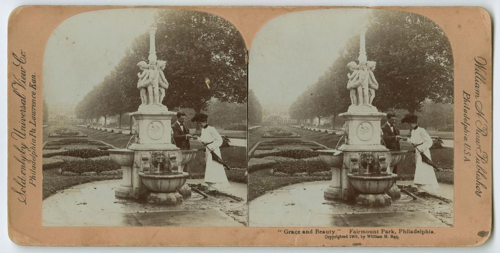 | Keywords: stereographs philadelphia fairmount park fairmountpark fountains horticultural hall horticulturalhall garden avenue gardenavenue indoor View of an ornately decorated fountain and the Garden Avenue in front of Horticultural Hall, at Fairmount Park, Philadelphia, 1901. Cherubs, lions' heads and multiple basins adorn the fountain. A man and woman standing next to the fountain hand something to one another. Accession number: P.2011.47.903 View of an ornately decorated fountain and the Garden Avenue in front of Horticultural Hall, at Fairmount Park, Philadelphia, 1901. Cherubs, lions' heads and multiple basins adorn the fountain. A man and woman standing next to the fountain hand something to one another. Accession number: P.2011.47.903 |