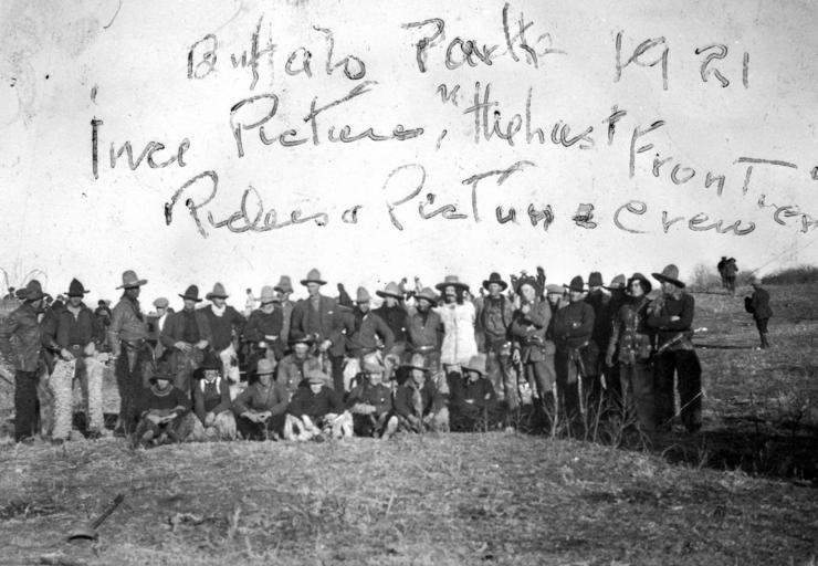 Keywords: alberta film movies filmmaking westerns blackandwhite monochrome outdoor text black and white A buffalo stampede was filmed in Wainwright Buffalo National Park for the climax of this western film, not released until 1926. A4737 A buffalo stampede was filmed in Wainwright Buffalo National Park for the climax of this western film, not released until 1926. A4737 |