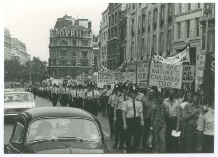 | Keywords: lse london school of economics londonschoolofeconomics gay liberation front gayliberationfront glf gay rights gayrights gay pride gaypride pride march pridemarch london demonstration protest lgbt rights lgbtrights lgbt history lgbthistory equal rights equalrights banner banners 1972 policemen bobbies bovril cars piccadilly circus piccadillycircus outdoor Marchers and police at Gay Pride march, London, [1974] IMAGELIBRARY/1371 Persistent URL: archives.lse.ac.uk/Record.aspx?src=CalmView.Catalog&i... Marchers and police at Gay Pride march, London, [1974] IMAGELIBRARY/1371 Persistent URL: archives.lse.ac.uk/Record.aspx?src=CalmView.Catalog&i... |
