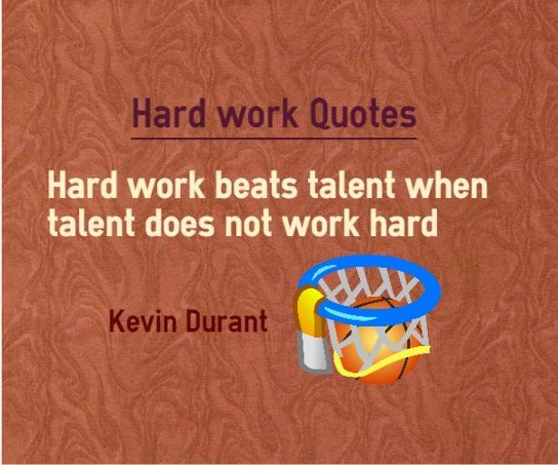 Keywords: work hard hard work quotes hardworkquotes work hard quotes workhardquotes quotes about hard work quotesabouthardwork quotes about working hard quotesaboutworkinghard work quotes workquotes talent kevin durant kevindurant quotes Quotes about hard work : Hard work beats talent when talent does not work hard. Author Kevin Durant. Explanation on quotes about working hard : There are two types of people who achieve success, people who work hard and people who have the talent. It is very difficult to beat somebody who has both talent and hard work. This quotes about hard work talks about this message. I like to work hard; it fascinates me. I can sit and look at it for hours together. I love to keep it done by myself; the idea of getting rid of my tasks nearly breaks my heart. Quotes about hard work paraphrased by Jerome K. Jerome in Three Men in the Boat. Quotes about hard work : Hard work beats talent when talent does not work hard. Author Kevin Durant. Explanation on quotes about working hard : There are two types of people who achieve success, people who work hard and people who have the talent. It is very difficult to beat somebody who has both talent and hard work. This quotes about hard work talks about this message. I like to work hard; it fascinates me. I can sit and look at it for hours together. I love to keep it done by myself; the idea of getting rid of my tasks nearly breaks my heart. Quotes about hard work paraphrased by Jerome K. Jerome in Three Men in the Boat.