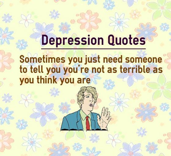 | Keywords: quotes on depression quotesondepression depression quotes depression quotes depressionquotes terrible lonely tolerable sad mood love Quotes on depression : Sometimes you just need someone to tell you that you are not as terrible as you think you are. When you are under depression, you need somebody to share your feelings. You need reassurance from others that you are not that terrible as you think. Quotes on depression from brain quotes. No amount of love and affection can cure depression or any other dark and sad moods. Love can help, it can make the pain more tolerable, but, always, one is beholden to medication that may or may not always work and may or may not be bearable. The best cure to depression is to get out of bed and start working with full enthusiasm. Quotes on depression : Sometimes you just need someone to tell you that you are not as terrible as you think you are. When you are under depression, you need somebody to share your feelings. You need reassurance from others that you are not that terrible as you think. Quotes on depression from brain quotes. No amount of love and affection can cure depression or any other dark and sad moods. Love can help, it can make the pain more tolerable, but, always, one is beholden to medication that may or may not always work and may or may not be bearable. The best cure to depression is to get out of bed and start working with full enthusiasm. |