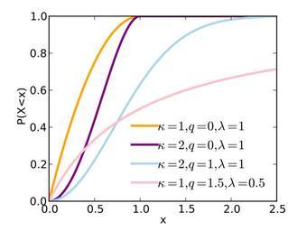 Keywords: QWeibull cdf.svg en Graph of the q-Weibull cdf 2014-04-21 00 26 51 own <br /> Created with Matplotlib Bscan cc-zero <source lang 'python'> from __future__ import division import numpy as np import matplotlib pyplot as plt def qexp x q if q 1 y np exp x else y 1+ 1-q x 1/ 1-q y 1+ 1-q x < 0 0 return y step 0 001 X np arange 0 2 5 step col 1 'orange' 2 'purple' 3 'lightblue' 4 'pink' plt figure figsize 4 3 2 plt axes 0 17 0 13 0 79 0 8 plt hold True A leg_str lvals 1 1 1 0 5 qvals 0 0 1 1 5 kvals 1 2 2 1 for i q k l in zip range qvals __len__ qvals kvals lvals qp 1/ 2-q lp l/ 2-q 1/k C 1-qexp - X/lp k qp integral sum P step a plt plot X C '-' color coli+1 lw 2 5 A append a leg_str append r \kappa k q q \lambda l format k k q q l l plt xlabel x plt ylabel r P X< x bx plt legend A leg_str numpoints 1 handletextpad 0 loc lower right bx draw_frame False plt savefig qWeibull_cdf svg </source> Uploaded with UploadWizard Q-Weibull distribution |