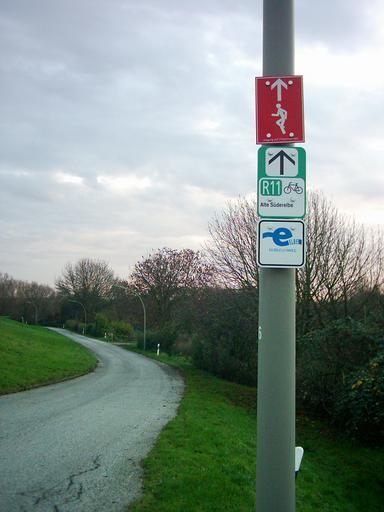 Keywords: R11 Alte Süderelbe.jpg Schilder am Finkenwerder Westerdeich von oben Jogging auf Finkenwerder R11 - 2 Grüner Ring - Freizeitroute 11 Elberadweg own Own photo 2006-11 GeorgHH Own work all rights released Public domain Cycling route signs in Hamburg |