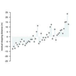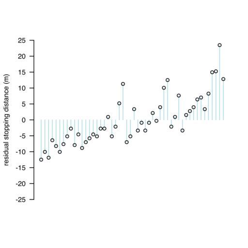 Keywords: R-car stopping distances 1920+null-resids.svg en A plot of residuals from a null linear model fit of car stopping distances Own HYanWong 2009-01-19 Created with R using the following commands <pre> svg R-car_stopping_distances_1920+null-resids svg 4 4 8 plot residuals null model type h ylim c -25 25 yaxp c -25 25 10 bty n xaxt n las 2 xlab NA ylab residual stopping distance m col lightblue points residuals null model dev off </pre> Uncategorized 2015 March 23 |