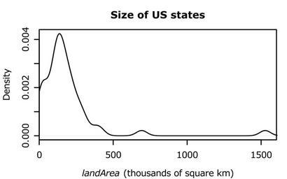 Keywords: R-US state areas-density.svg en Kernel density plot example Data US state areas Own HYanWong 2009-03-06 v svg file R-US_state_areas-density svg width 4 height 2 5 pointsize 8 Kernel density plot example Data US state areas par mar c 4 4 3 1 +0 1 X <- state area 2 58998811/1000 plot density X main Size of US states xlab expression paste italic landArea thousands of square km xlim c 0 max X 1 05 xaxs i dev off Uncategorized 2015 March 23 |
