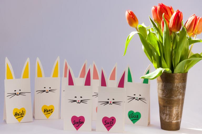 Keywords: rabbit hand labor tinker paper bunny stand table decoration chalkboard tulips bouquet spring nature flowers schnittblume blossom bloom plant flora flower bracts red orange lily