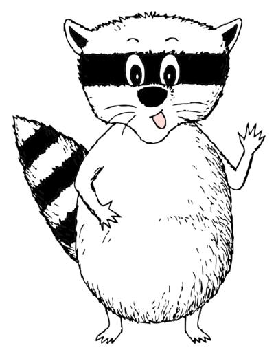 Keywords: raccoon smiling standing animal waving explaining cartoon