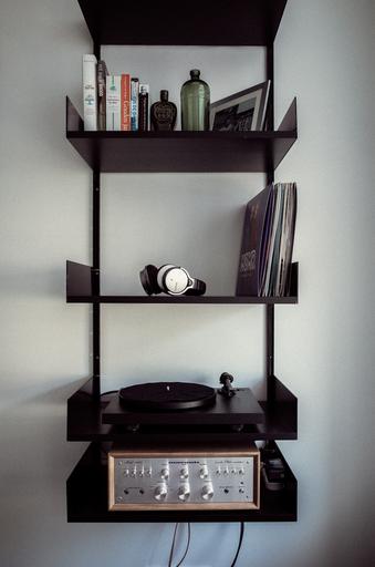 Keywords: rack hifi living interior furniture modern style design books music record audio metallic equipment