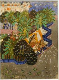 View Original: | Radha feeds the fishes, Rajasthan, Kotah style, c. 1800 AD, watercolor and gold on paper - Ethnological Museum, Berlin - DSC01507.JPG (3337x4495) | |||