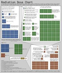 | Keywords: Radiation (xkcd).png Information This is a chart of ionizing radiation dose a person can absorb from various sources http //xkcd com/radiation/ Randall Munroe cc0 Uploaded from Mobile iOS 1 0 1 Mobile uploads lacking EXIF data for camera Radiation health effects Radiation dosage |