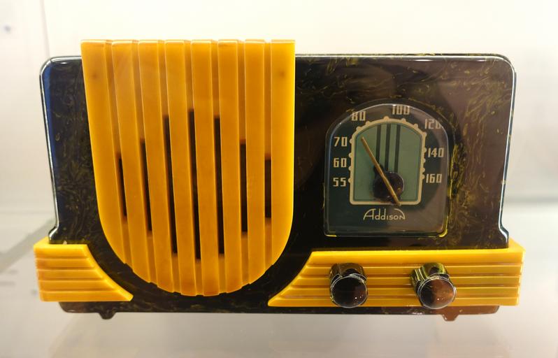 Keywords: Radio, Model 52A, Addison Industries, Toronto, Canada, 1940, Catalin case - Museum für Angewandte Kunst Köln - Cologne, Germany - DSC09460.jpg Industrial design right This protection period has passed and hence this work is now in the public domain 2015-11-28 10 33 34 own Daderot other versions cc-zero Radios in the Museum für Angewandte Kunst Köln Addison radio receivers |
